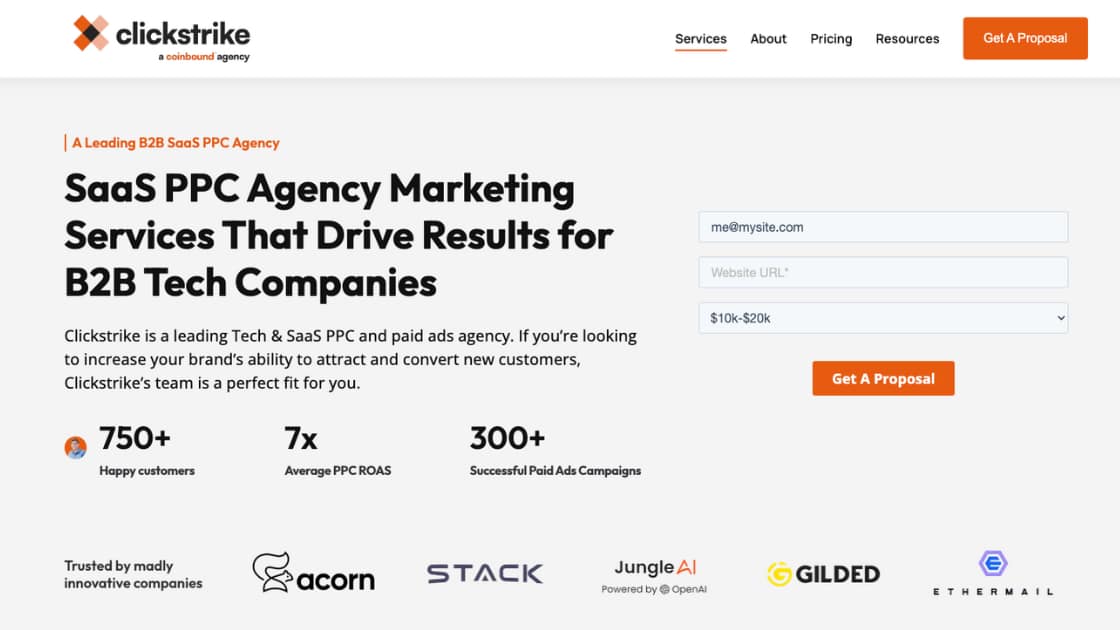 Clickstrike is a top-tier Google Ads and social ads agency for SaaS and B2B brands.