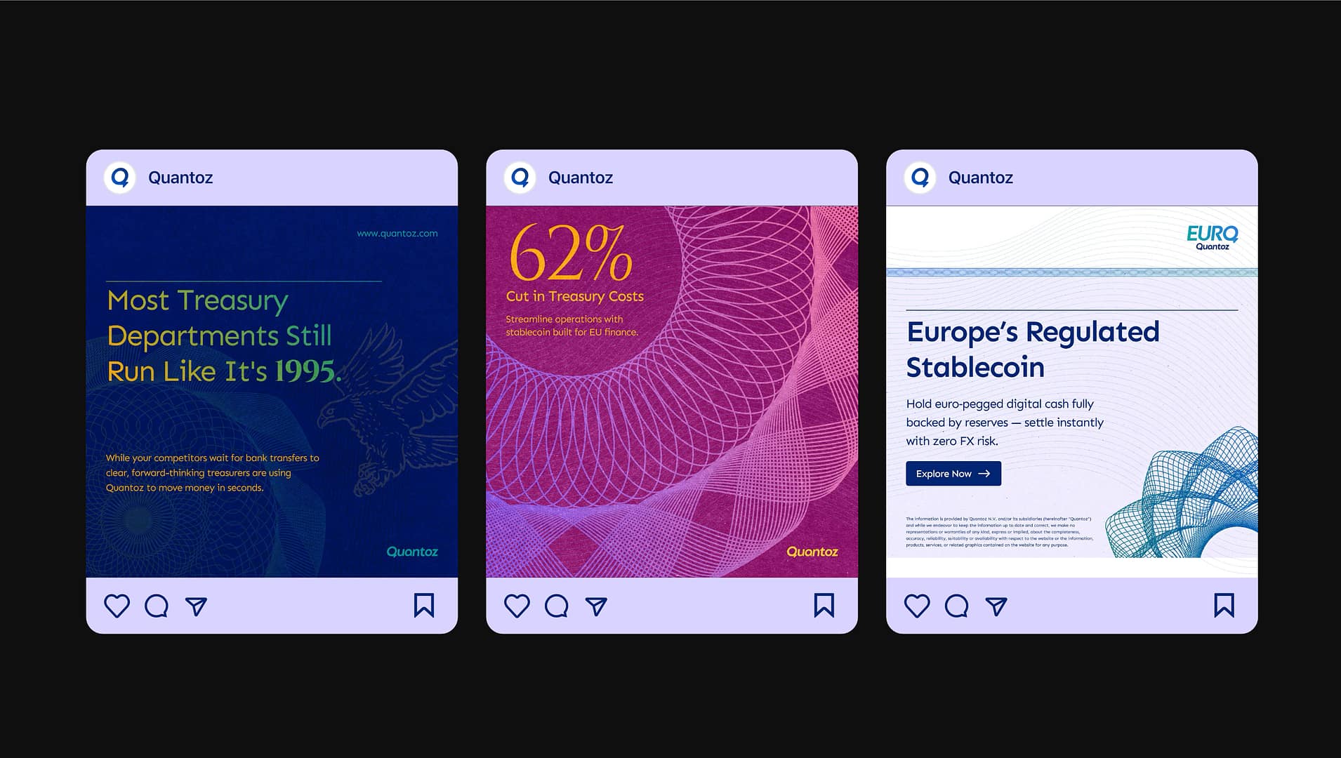 As pioneers in regulated blockchain finance, Quantoz had a sophisticated offering but an outdated brand. Their previous identity lacked the clarity and modern polish needed to match the depth of their innovation and regulatory credibility.
